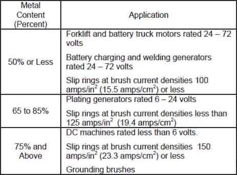following table describes some general applications where Metal Graphite Brushes