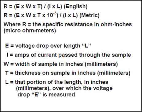 specific resistance is calculated from measurements on a test sample as