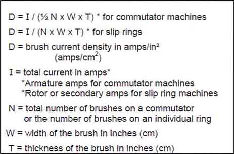 Brush current density of a given machine can be calculated as follows:- |